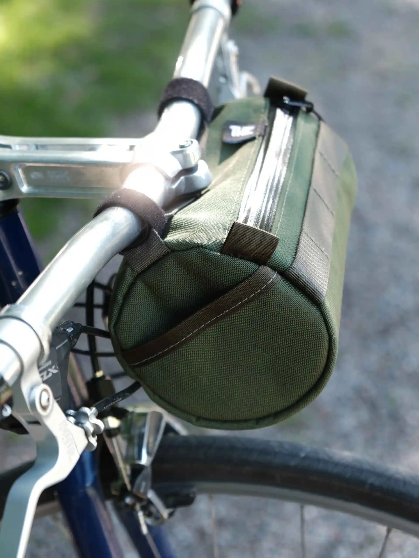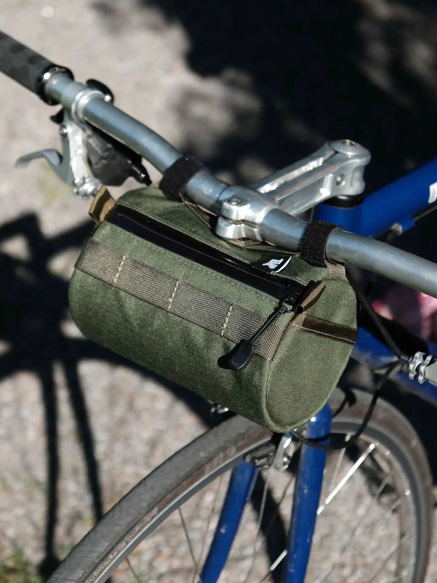 Lukaksen Tukholmassa ompelema, support your almost local! Kiinnittyy tankoon velcro-remmeillä ja emäputkeen paracordilla (sisältyy) tai kumiremmeillä (ei sisälly), jotka voi saksia sopivaan mittaan.