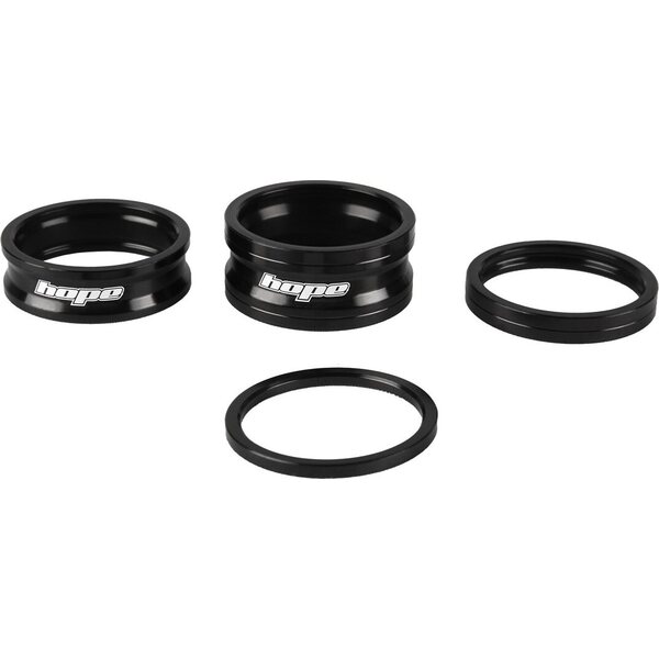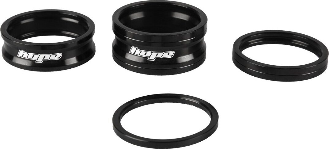 1 1/8" -spacersetti joka sisältää koot 2,5mm, 5mm, 10mm ja 15mm